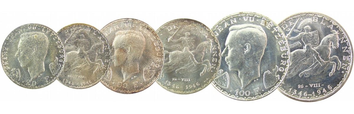 Luxembourg Lot; Includes 1946 20Fr(3) KM#47, 50Fr(3) KM#48 & 100Fr(3) KM#49. Lot of 9 attractively toned BU issues.
