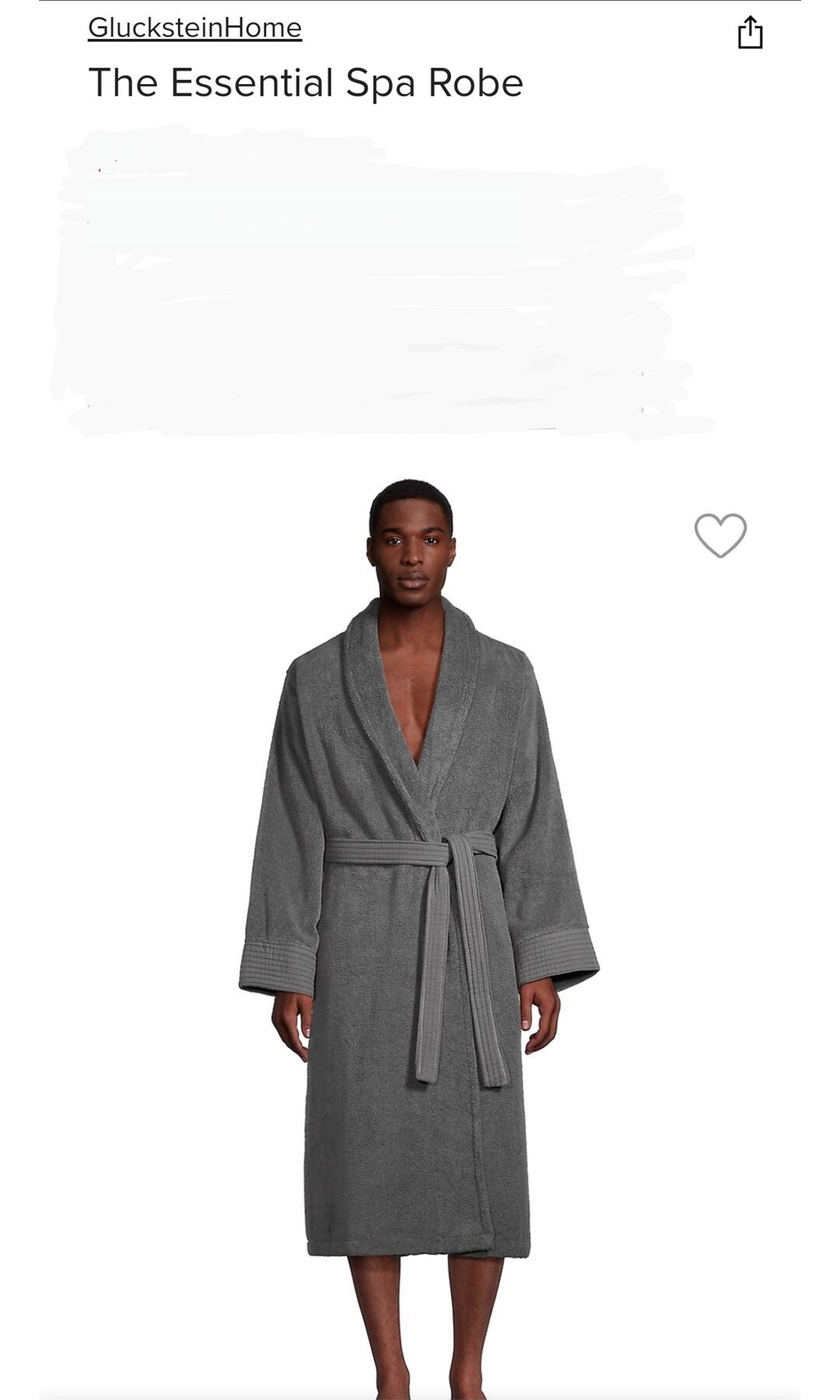 Luxurious gray cotton robe, knee-length with shawl collar, comfortable and absorbent, new.