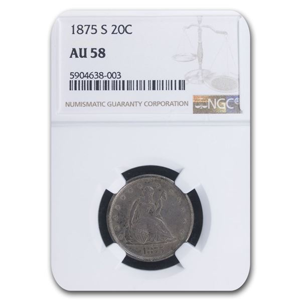 85 - 1875-S Twenty Cent Piece AU-58 NGC3 Kings Auction