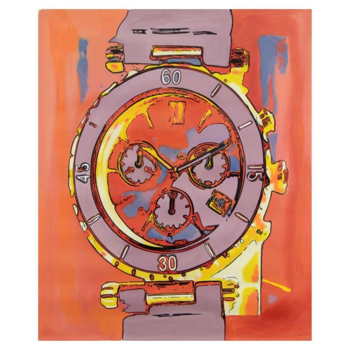 "Luxury Watch for Her" is a hand-painted one-of-a-kind mixed media on canvas by Ringo (Daniel Funes) - protege of Andy Warhol's apprentice, Steve Kaufman. This piece is hand signed by the artist and Includes Certificate of Authenticity. Measures approx. 32" x 40" (image).