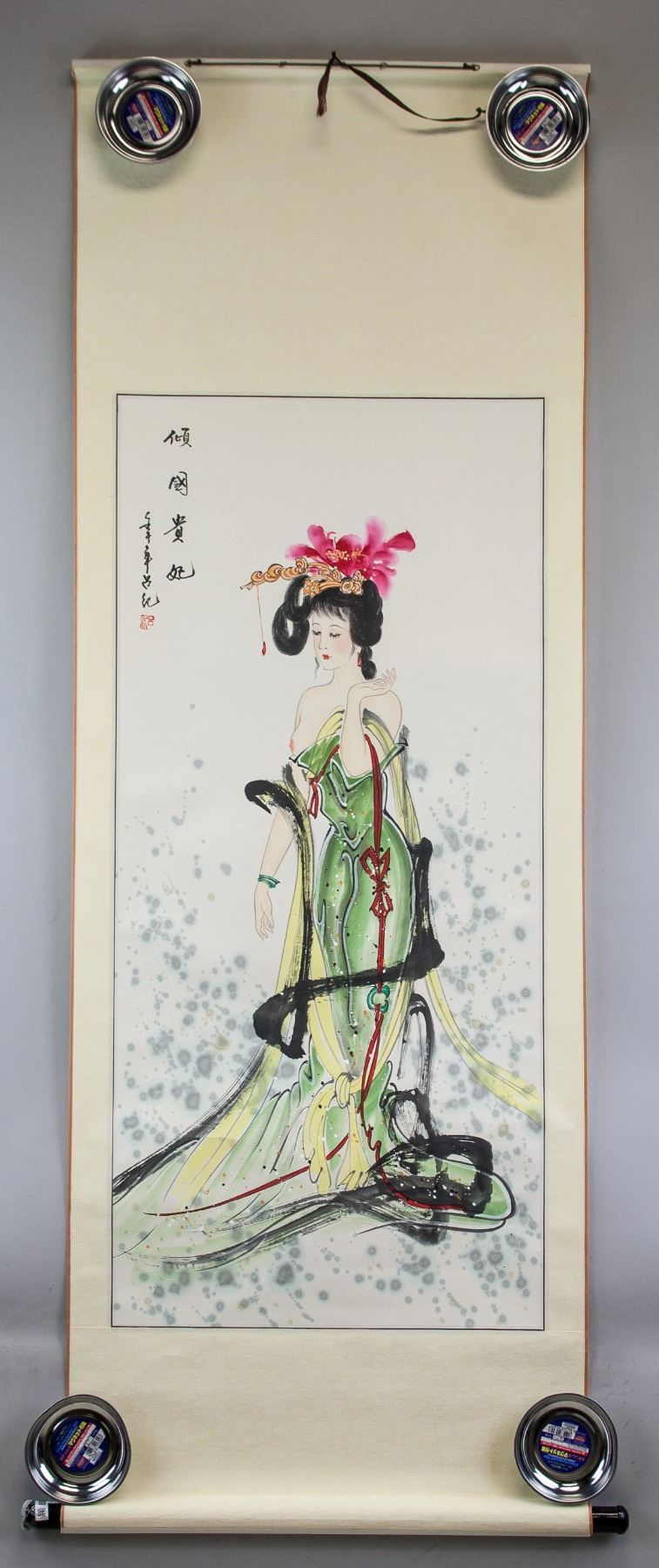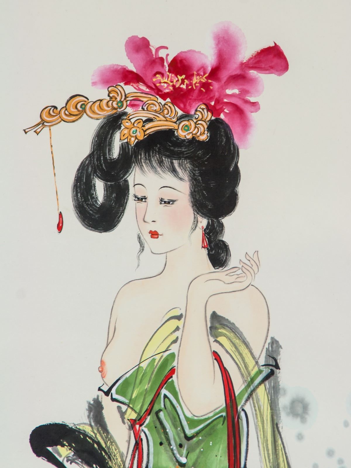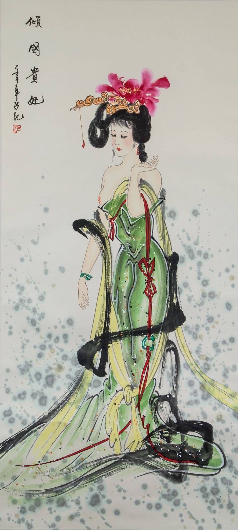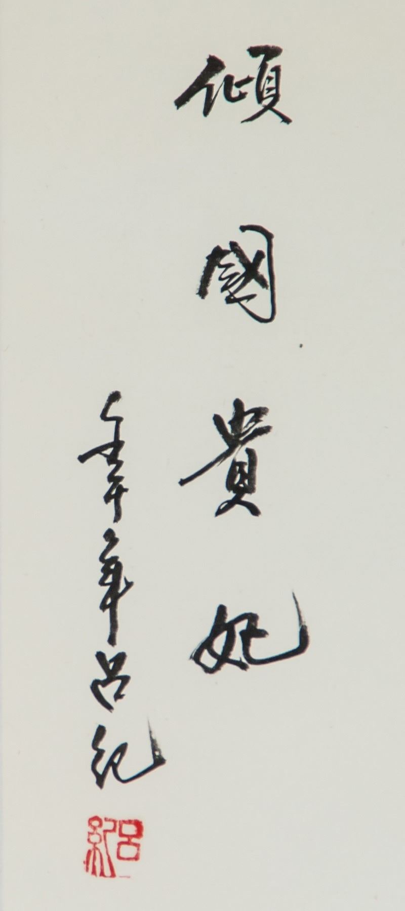 Ink and watercolor on paper, hanging scroll, featuring beauty, signed Lv Ji (20th century, Chinese), inscribed with 1 artist seal, 94 x 43 cm. PROVENANCE: Eastern Shen Collection, Toronto