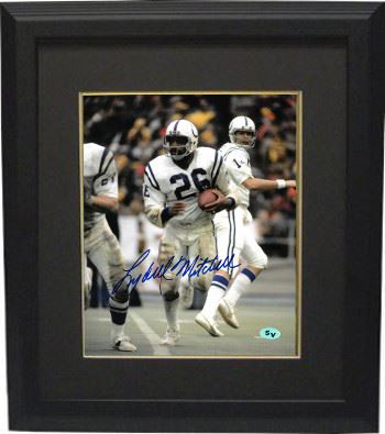 Lydell Mitchell established himself in the mid-1970s as one of the best all-around running backs in the NFL. Mitchell, along with teammate Bert Jones, propelled the Baltimore Colts to three consecutive AFC East Division titles, unseating a powerhouse Miami Dolphins team that had topped the division for four straight years (1971–74).Mitchell topped the 1,000-yard rushing plateau in three consecutive seasons (1975–77) earning Pro Bowl honors each year. In addition to his rushing exploits, he twice led the NFL in pass receptions, in 1974 and 1977. Mitchell was named 2nd Team All-Pro in 1976 and 1977 as well as being named 2nd Team All-AFC following the 1975 campaign. Lydell Mitchell has hand signed this Baltimore Colts 8x10 Photo. Certificate of Authenticity from Athlon Sports Collectibles. Custom Black Mat and Premium Black Color Framed as shown.