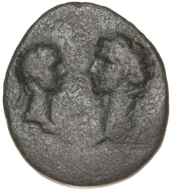 Obverse shows Claudius and Messalina facing. Reverse shows their son Britannicus. Very rare Fine