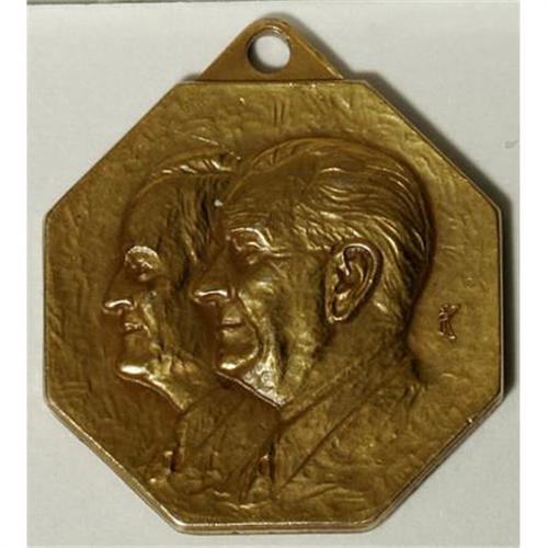 <B>Lyndon B. Johnson/Hubert H. Humphrey Inaugural Ball Charm.</B></I> 23 mm x 26 mm. 1/10-10-kt gold-filled inaugural pendant made for the inaugural ball of President Lyndon B. Johnson and Vice President Hubert H. Humphrey, January 20, 1965. The top ring is missing.<BR><BR><b>Shipping:</b> Coins & Currency (<a target="_blank" href="http://www.heritageauctions.com/common/shipping.php">view shipping information</a>)