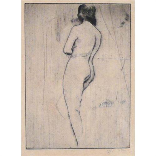 7597 Lyle D. Strain Etching Nude Signed lower right 7 1/2" x 5"