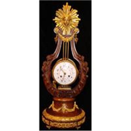 Beautiful and unusual clock. Sunburst maiden. Floral swags. Marked escaller d'ecristal. <BR><BR>Original movement believed to be operable, but requires professional service - no warranty.