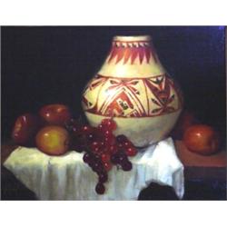 Lyle Tayson, Jr. Oil. Still Life. "Indian Pot with Grapes." 16" x 20". Est. $1,000-$1,500.