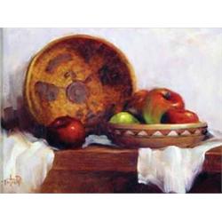 Lyle Tayson Jr (Wyoming). Oil on Canvas. Still Life with Apples. 12" x 16". Framed. Estimate $500 - $600.