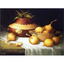 Lyle Tayson Jr (Wyoming). Oil on Canvas. Still Life with Indian Pot. 18" x 24". Framed. Estimate $1,500 - $2,000.