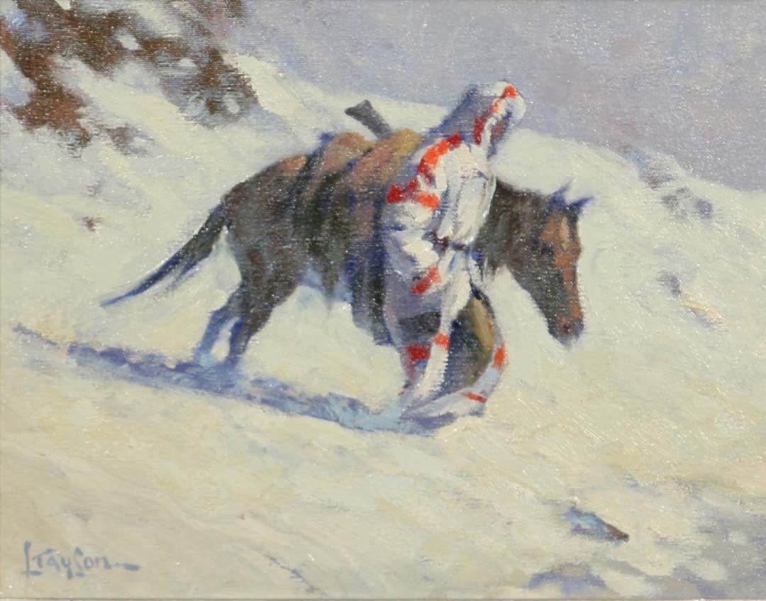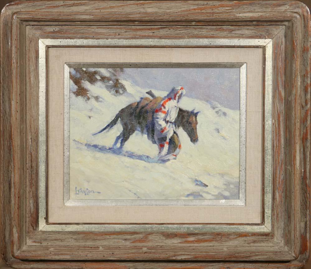 Lyle Tayson (b.1924). Down From The High Country . 11" x 14" oil on canvas. Signed lower left. (est $700-900). For condition reports please visit: www.auctioninsantafe.com/cr2011.pdf