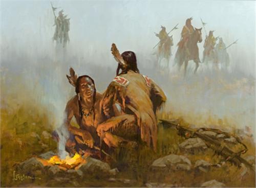 Lyle Tayson (b. 1924). Who Goes There? 30" x 40" oil on canvas. Signed lower left. (est $6,000-8,000)