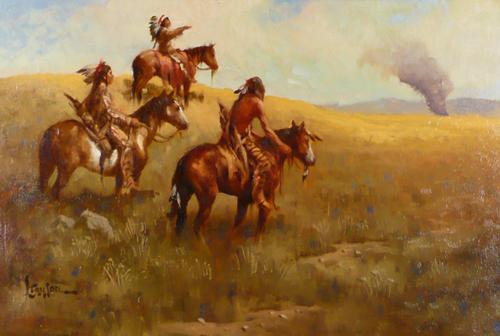Lyle Tayson Sr. (1924-) Oil on Canvas "Prairie Fire" Signed lower left 20" x 30" (Sale of this item will benefit Palmer Land Trust)