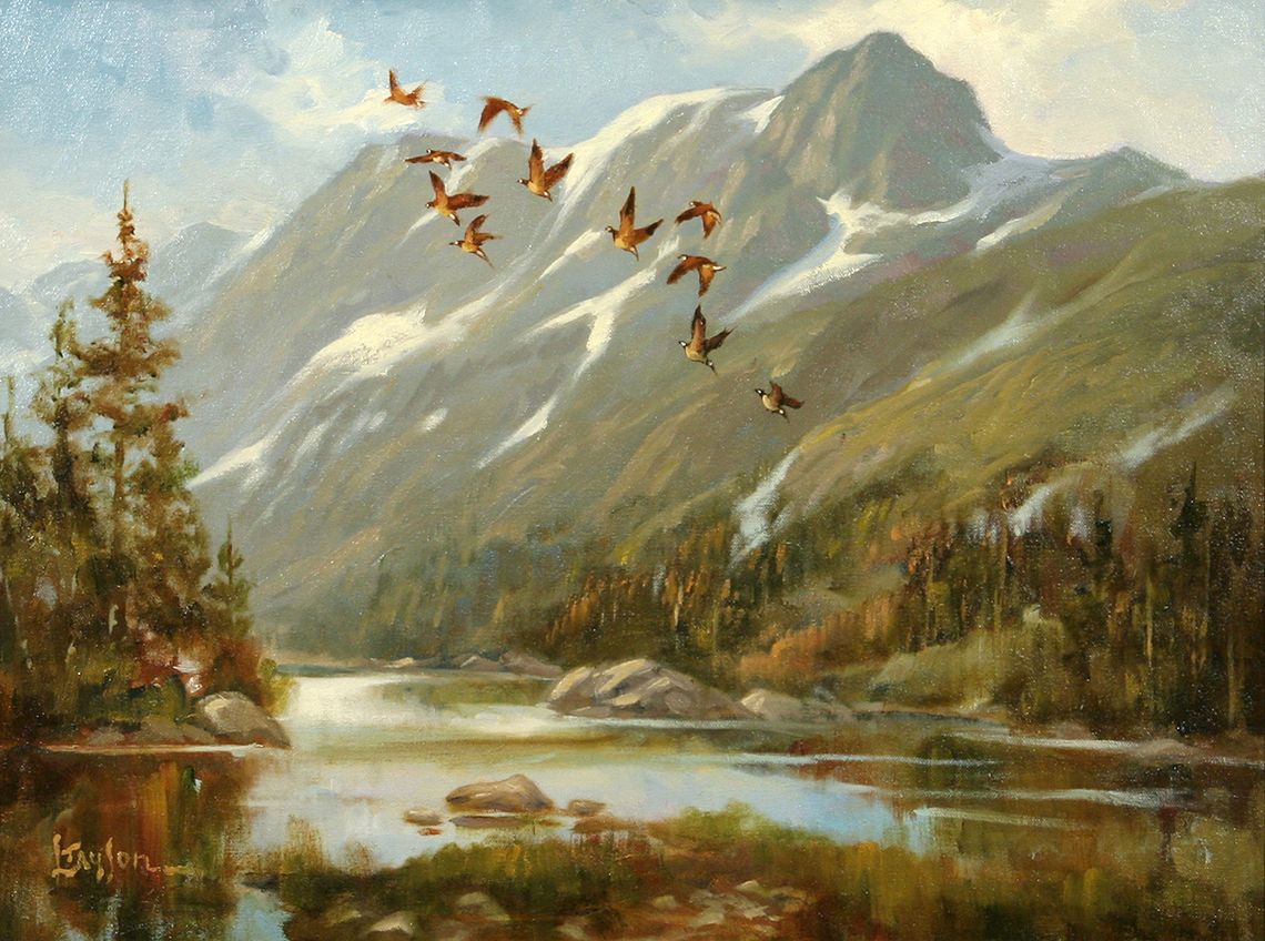 Lyle Tayson (b. 1924). Full Flight. 18" x 24" oil on canvas. Signed lower left: L Tayson. (est. $2,000-3,000). CONDITION REPORTS: www.auctioninsantafe.com/docs/cr2012.pdf