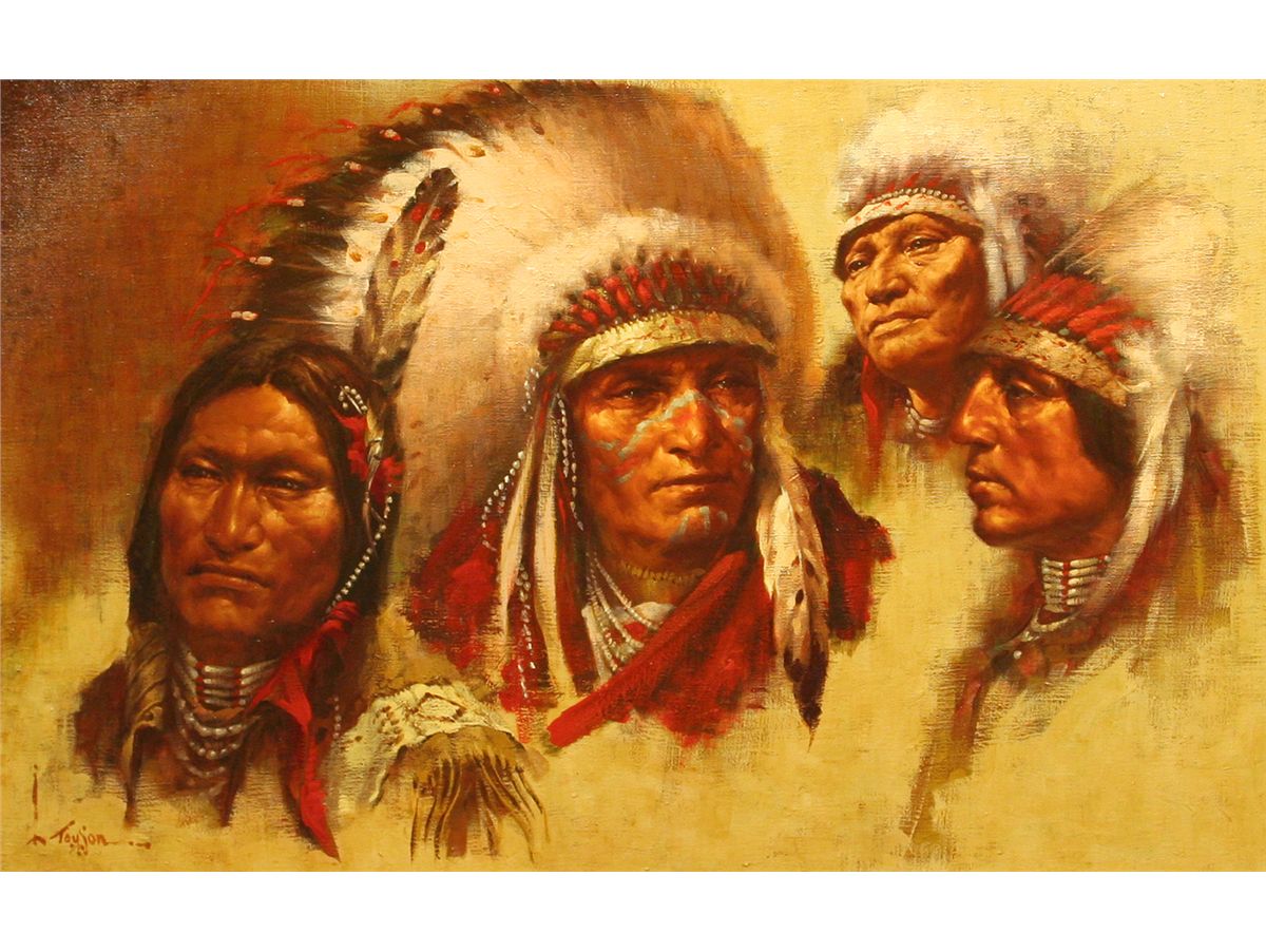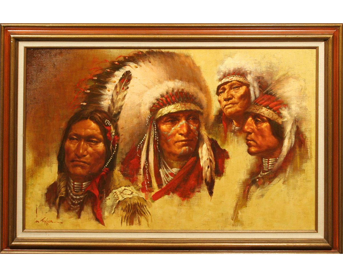 Lyle Tayson, Sr (1924 - ). Sioux. 24" x 36" oil on canvas. Signed lower left: L. Tayson.