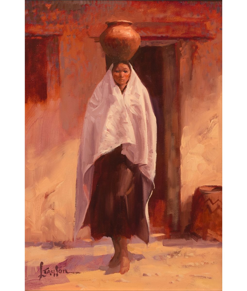 Lyle Tayson (1924 - ). To the Village. 30" x 20" oil on canvas. Signed lower left: L Tayson.