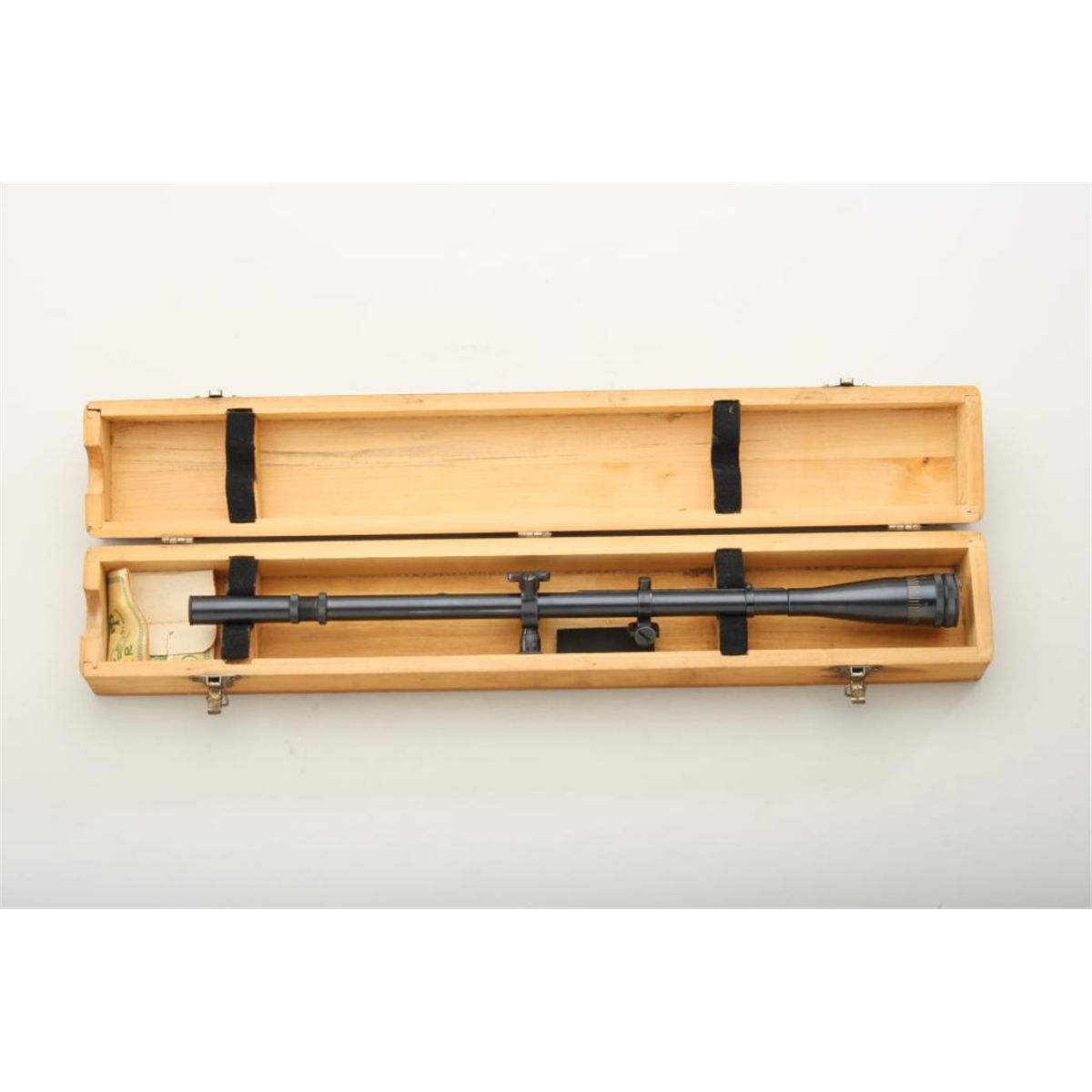 Lyman 10X scope with mounts and lens protectors; contained in Lyman marked wood carry case in overall fine condition. Est.: $300-$500.