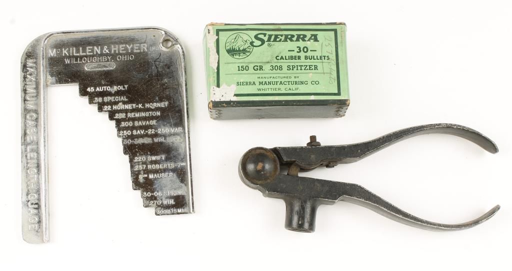 Includes alloy and steel handles with 9 dies of unknown caliber and case length gauge.