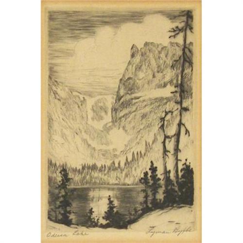 Lyman Byxbe (1886-1980) Etching, "Odessa Lake", image size 4 7/8" x 3 1/4", pencil signed