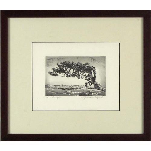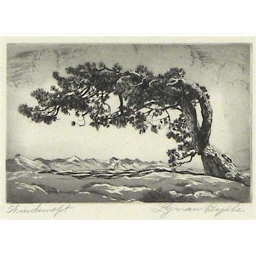 Lyman Byxbe (1886-1980) Etching, "Windswept", image size 3" x 4 5/8", pencil signed