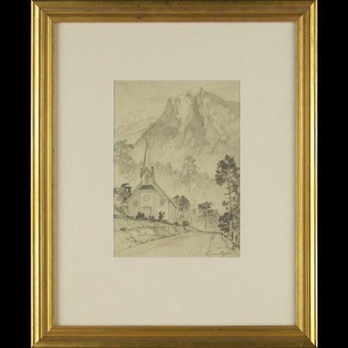 Lyman Byxbe (1886-1980) (Colorado) Pencil, Mountain Church, sight size 9" x 6", signed lower right