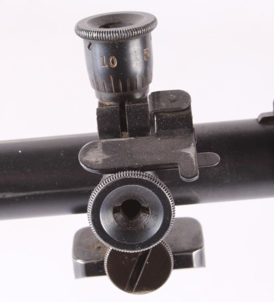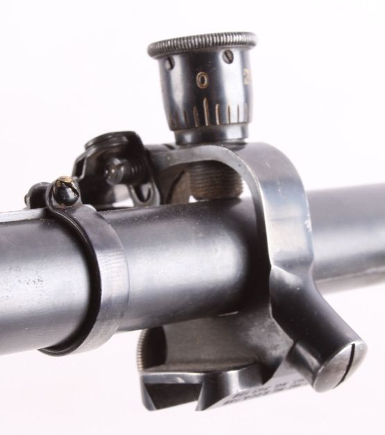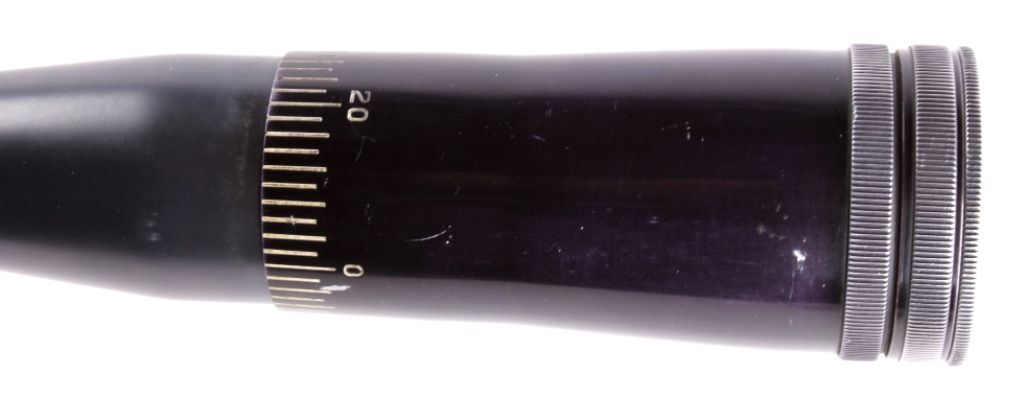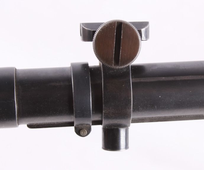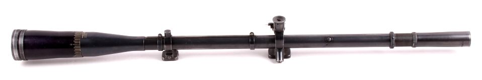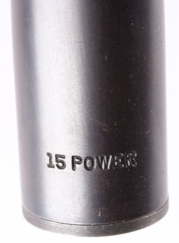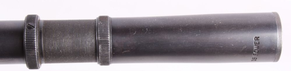 This is a very desirable and rare original early Lyman Super Targetspot Sight 15 Power in great condition. The sight is one of the more collectible and sought after pieces due to its external adjust ability. Here is ascarce and beautiful older Lyman 15 power scope. It is gloss black. It has a fine crosshair reticle and 3/4" tube with adjustable objective and also both screw off metal lens caps. Measures 24.75" long.