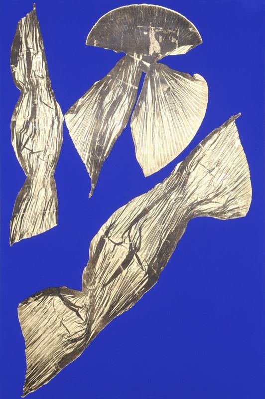 Medium: Lithograph with gold leaf on blue hand tinted paper, signed and numbered verso