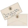 ANS signed “Lyndon,†one page on a handsome 4.25 x 2.25 stationery card gilt-embossed with the presidential seal, no date. Handwritten note to longtime West Virginia Senator Jennings Randolph, in full: "To Jennings—We are thinking of you and hoping for the best." In fine condition, with oxidation to the gilt-stamped seal and gilt edges. Accompanied by the original transmittal envelope, which bears a matching embossed seal on the flap.