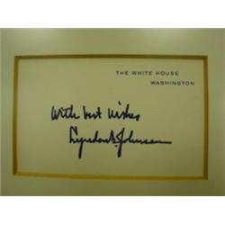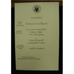Autographed photo of LBJ. White House Menu 1965. Nicely framed photo with autograph accompanied by White House menu for dinner on Wednesday, March 31, 1965. Condition: Very Good
