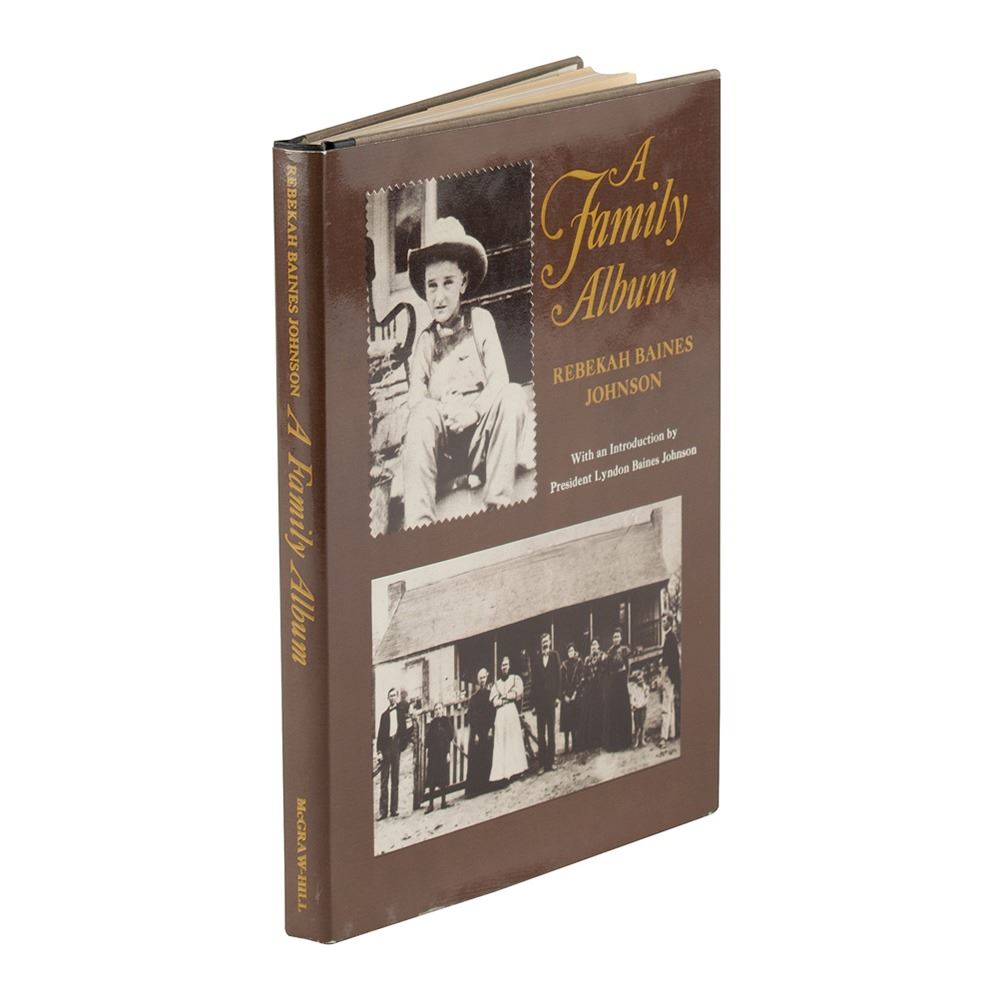 Signed book: A Family Album. First edition. NY: McGraw-Hill, 1965. Hardcover with dust jacket, 6.25 x 8.25, 146 pages. Signed on the half-title page in blue felt tip by Lyndon B. Johnson. In fine condition, with a price-clipped front jacket flap.