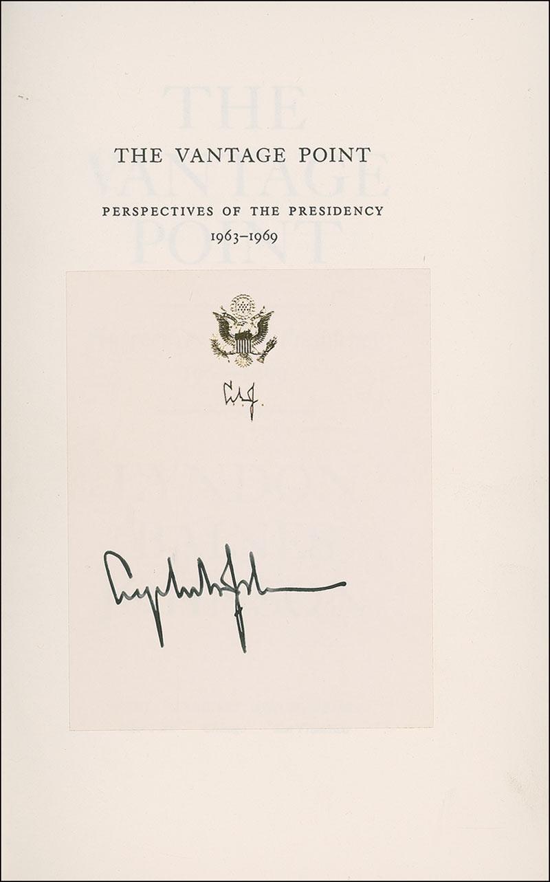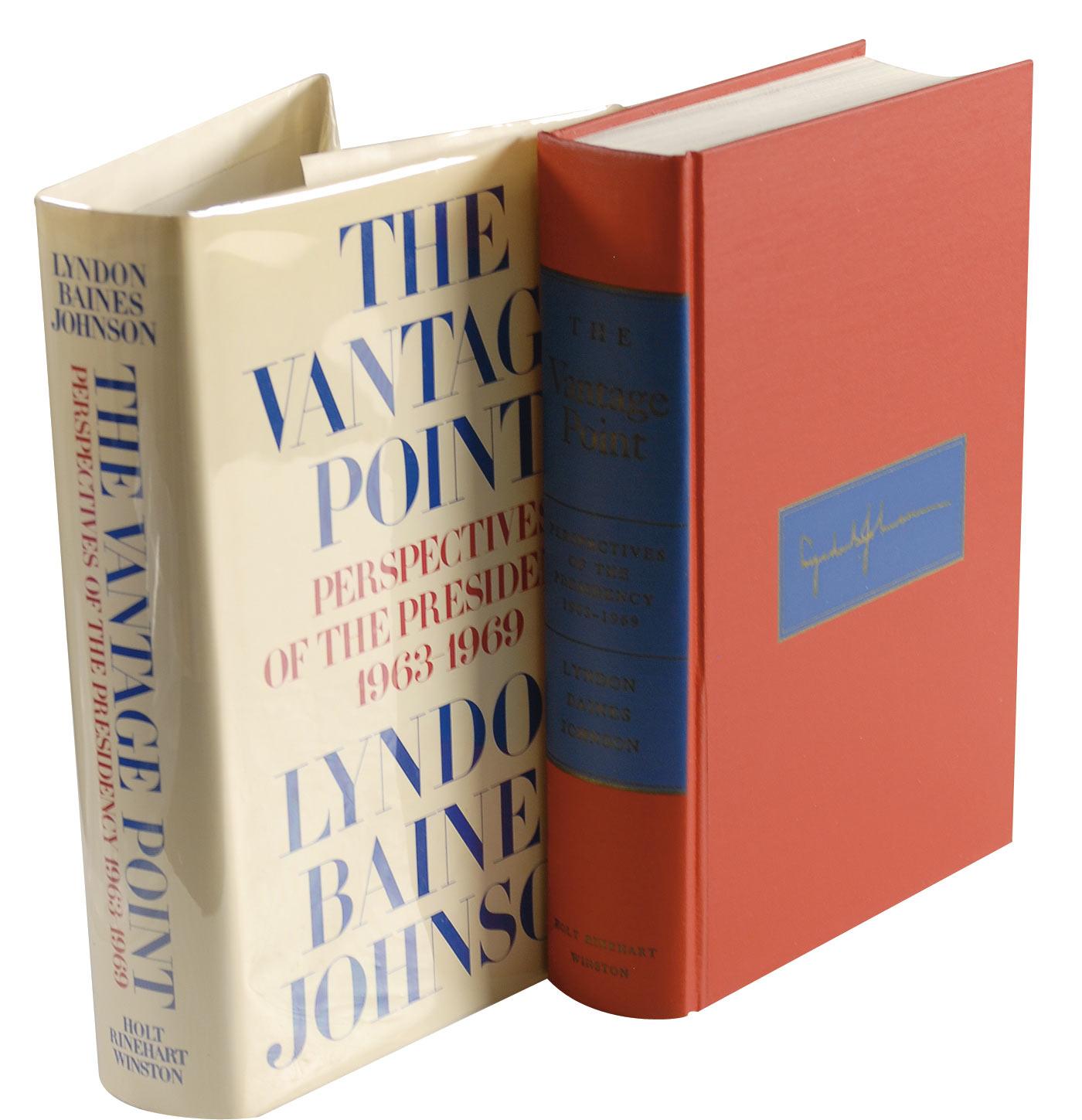 Signed book: The Vantage Point. First edition. NY: Holt, Rinehart and Winston, 1971. Hardcover with dustjacket, 6.25 x 9.5, 636 pages. Signed in black felt tip on an embossed bookplate affixed to the half-title page. In fine condition, with some mild toning to dustjacket. Accompanied by a custom slipcase.