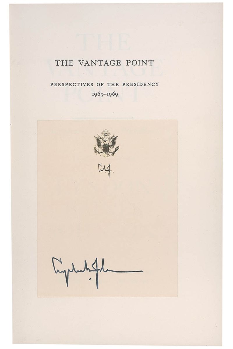 Signed book: The Vantage Point. First edition. NY: Holt, Rinehart, and Winston, 1971. Hardcover with dustjacket, 6.25 x 9.5, 636 pages. Signed in black ink on a bookplate affixed to the half-title page. In fine condition, with scattered light wear and creasing to dustjacket.
