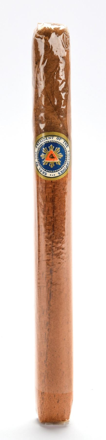 Still-sealed Tabacalera cigar gifted by President Lyndon B. Johns to Secret Service Agent Warren W. 'Woody' Taylor. The cigar bears its "Seal of the President of the Philippines" band, measures 6.75? in length, and is contained in its original cellophane wrapper. In fine condition. From the estate of Secret Service Agent Warren W. 'Woody' Taylor. On November 22, 1963, the day of President Kennedy's assassination, Taylor was on assignment in Dallas working as a Special Agent on Vice Presidential detail to protect Lady Bird Johnson. Taylor was in the vehicle immediately behind the Vice President's car in the Presidential motorcade. This cigar was likely obtained by President Johnson during his visit to Manilla in 1966 at a time when anti-war demonstrations were occurring worldwide. In late October, Johnson and dignitaries from six other countries—the Philippines, Australia, New Zealand, South Korea, South Vietnam, and Thailand—converged in Manilla to sign a communiqué that included a four-point 'Declaration of Peace' that stressed the need for a 'peaceful settlement of the war in Vietnam and for future peace and progress' in the rest of Asia and the Pacific.