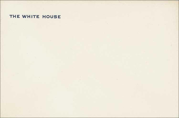 Extremely rare signed White House card, nicely signed in bold blue fountain pen, “Lyndon B. Johnson.” Accompanied by the original unaddressed White House transmittal envelope. In clean and very fine condition.