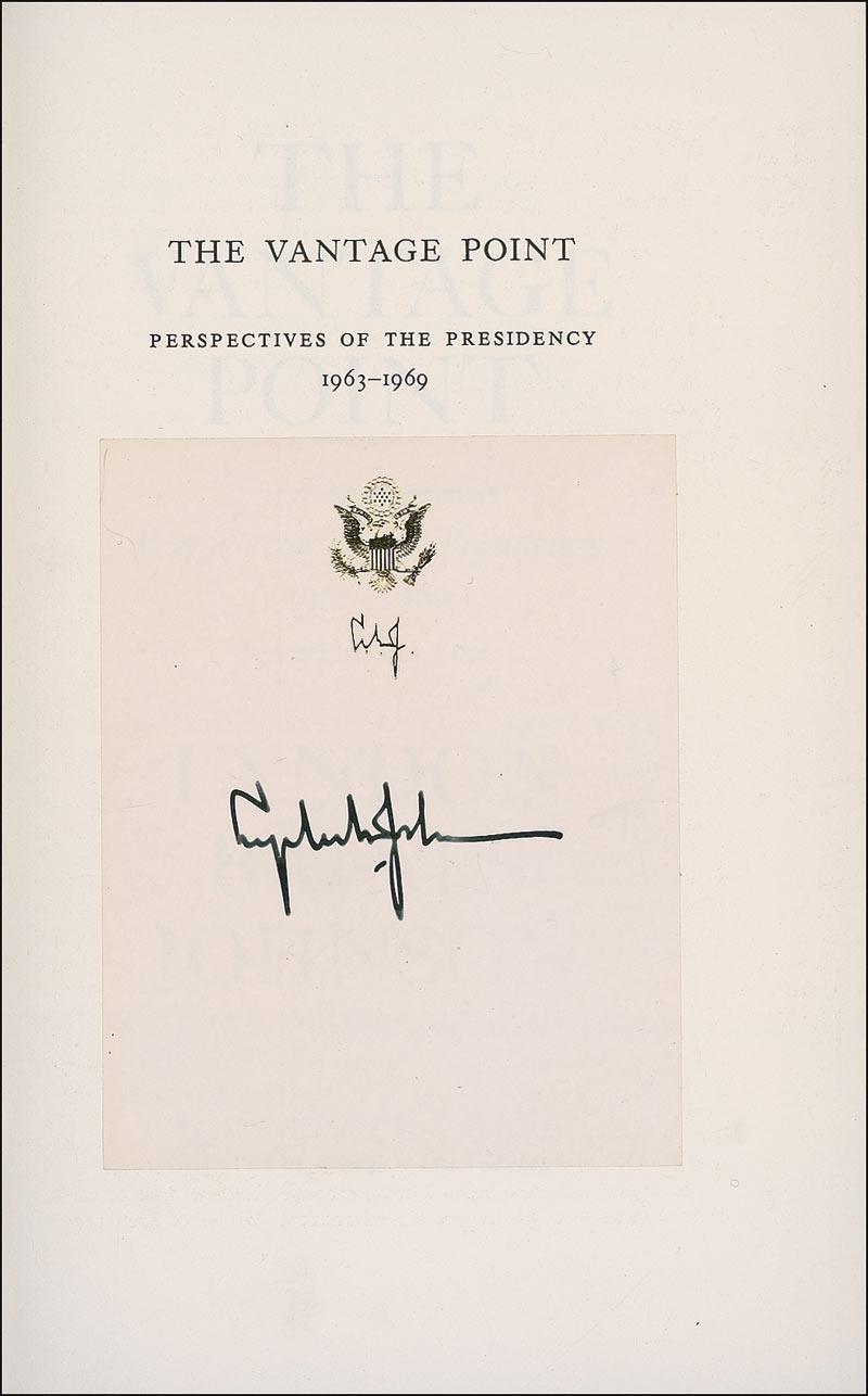 Signed book: The Vantage Point. First edition, first printing. NY: Holt, Rinehart, and Winston, 1971. Hardcover with dustjacket, 6.5 x 9.5, 636 pages. Signed in black felt tip on a bookplate affixed to the half-title page. Creasing and toning to dustjacket, as well as some peeling of outer lining of dustjacket, otherwise fine condition. Pre-certified John Reznikoff/PSA/DNA and RRAuction COA.