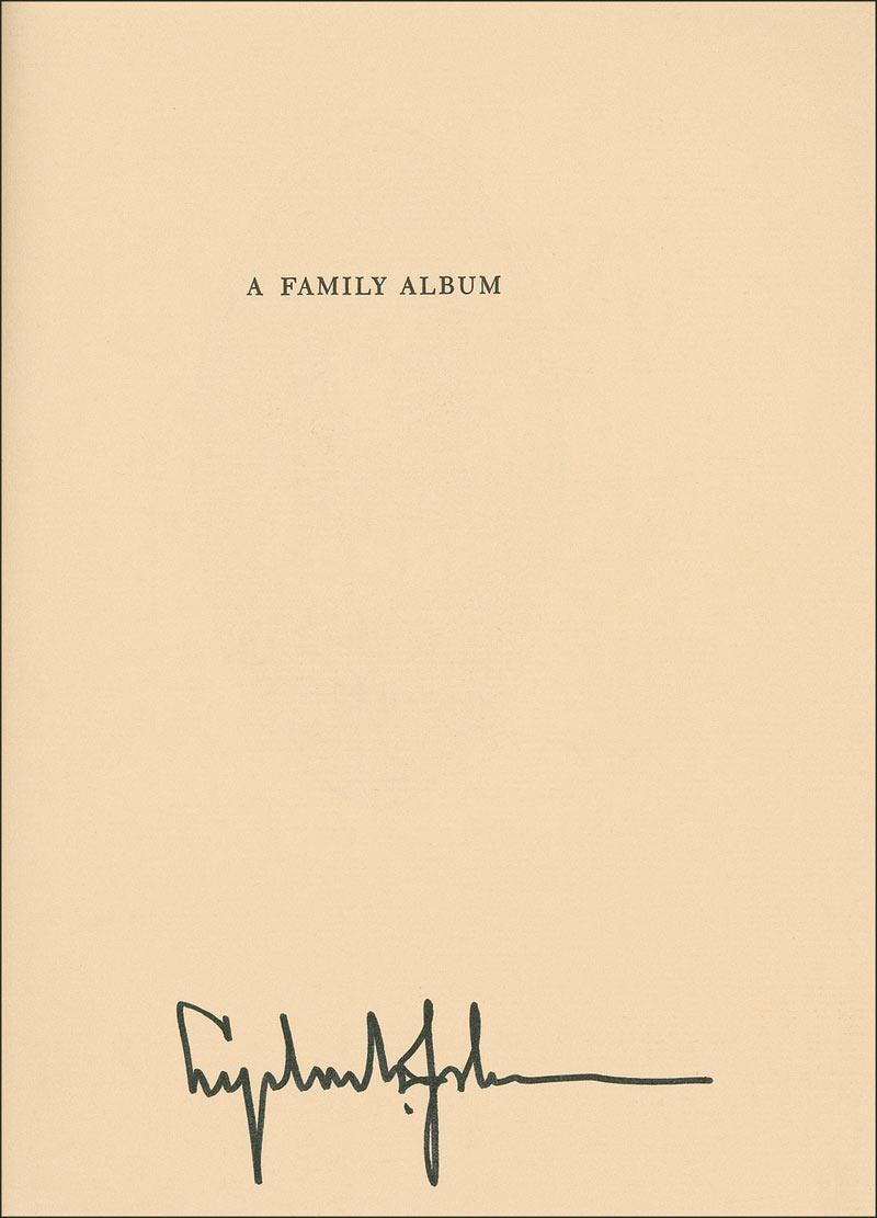 Signed book: A Family Album by Rebekah Baines Johnson. First edition. NY: McGraw-Hill, 1965. Hardcover with dustjacket, 6.5 x 8.5, 146 pages. Signed in black felt tip on the half-title page, “Lyndon B. Johnson.” Light soiling, a few small tears, clipped corner, and sunning to the spine of the dustjacket, otherwise fine condition.