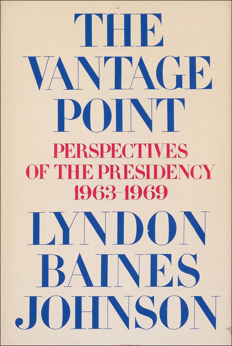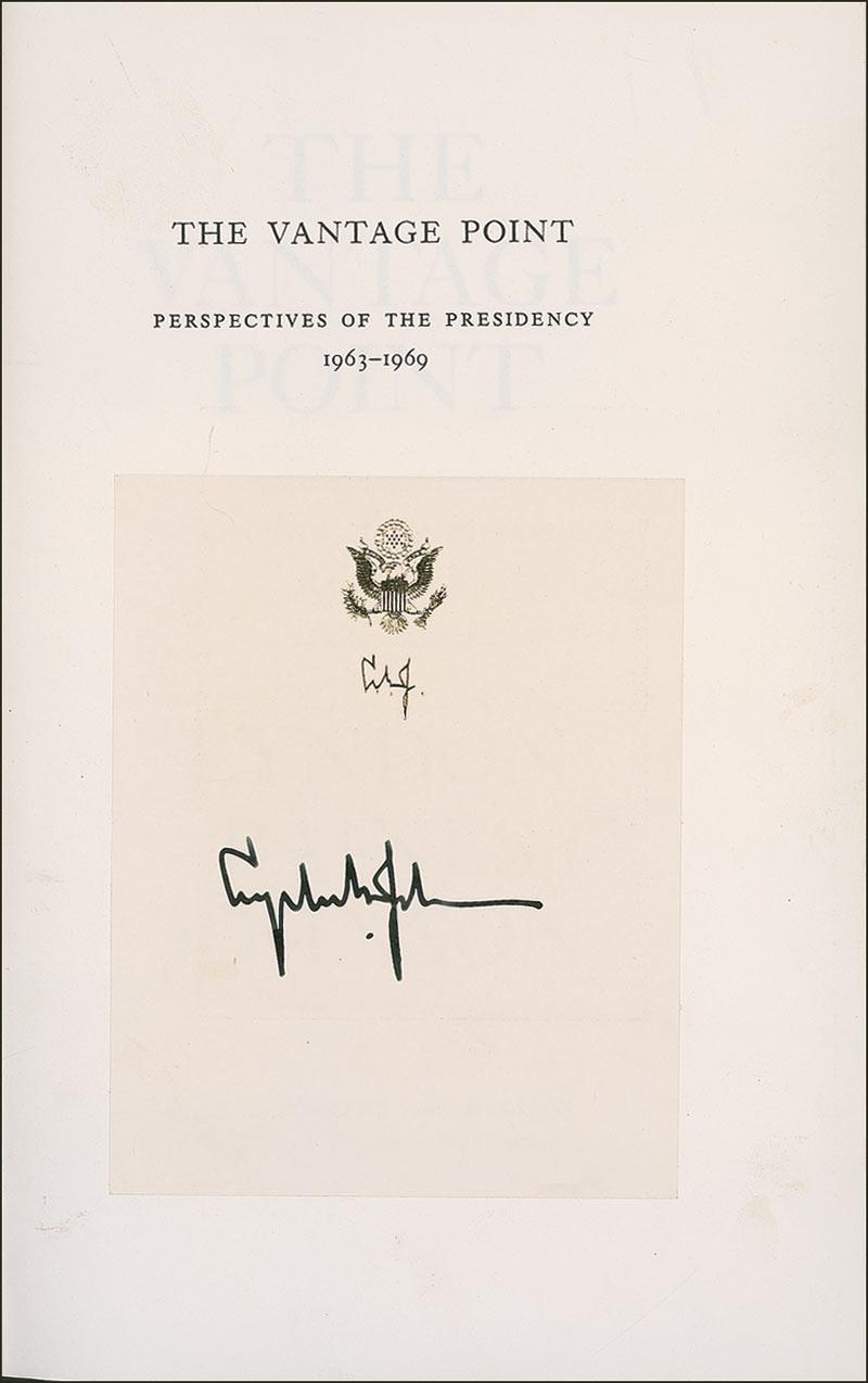 Signed book: The Vantage Point. First edition. NY: Holt, Rinehart and Winston, 1971. Hardcover with dustjacket, 6.5 x 9.5, 636 pages. Signed in black felt tip on a bookplate affixed to the half-title page. An owner’s bookplate affixed to the reverse of first free end page, a bit of light cover wear, and some small edge tears and creases to dustjacket, otherwise fine condition.