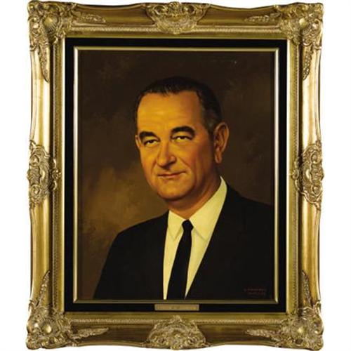<B>Lyndon Johnson and Lady Bird Johnson Oil Portraits</B></I> by Lawrence Williams. Each oil portrait is 16" x 20" and framed in gilt to an overall dimension of 23" x 27" with an engraved brass nameplate at the bottom of the frame.<BR><BR><b>Shipping:</b> Other (oversized items, group lo (<a target="_blank" href="http://www.heritageauctions.com/common/shipping.php">view shipping information</a>)
