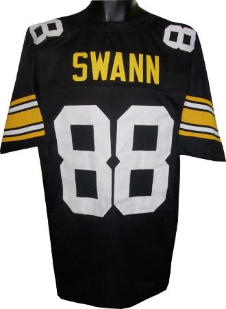 Lynn Swann was selected by the Pittsburgh Steelers with the 21st pick of the first round in the 1974 NFL Draft. He went on to win a championship ring with the Steelers in Super Bowl IX. Swann recorded four catches for a Super Bowl record in Super Bowl X with 161 yards and a touchdown in the game, assisting the Steelers to a 21–17 win and becoming the first wide receiver to earn Super Bowl MVP honors. This is a Lynn Swann Pittsburgh Steelers unsigned Black unlicensed custom-prostyle jersey with twill stitched nameplate and numbers. perfect for autograph or to wear! Size XL