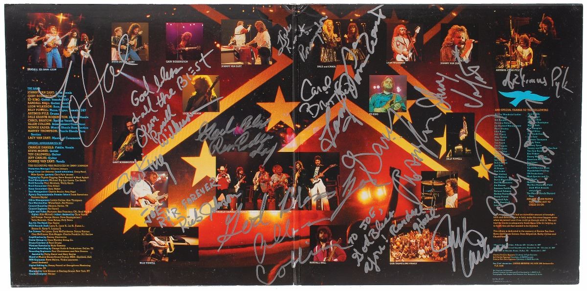 Southern by the Grace of God / Tribute Tour 1987 album signed and inscribed on the inner gatefold in silver ink by fourteen members of the band’s touring lineup, including: Johnny Van Zant, Gary Rossington, Artimus Pyle, Ed King, Leon Wilkeson, Lacy Van Zant, and Billy Powell. In fine condition. The record is included.