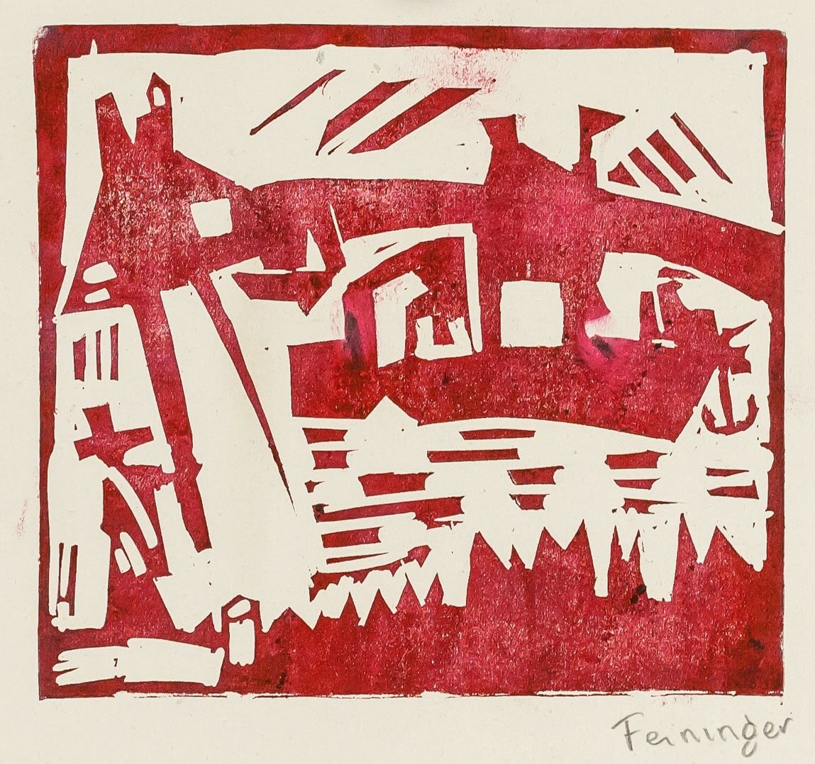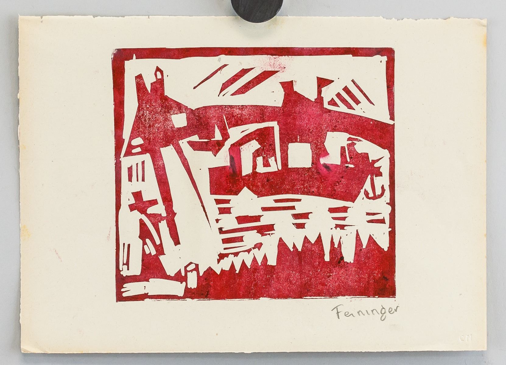 Woodcut on paper. Featuring a landscape sccene. Signed Feininger in pencil on the lower right corner. Stamped faintly on verso. Attributed to Lyonel Feininger (1871-1956, American). 16 x 22 cm (6.25 x 8.5 inches). Provenance: This lot carries limited provenance from a Southern Italian estate
