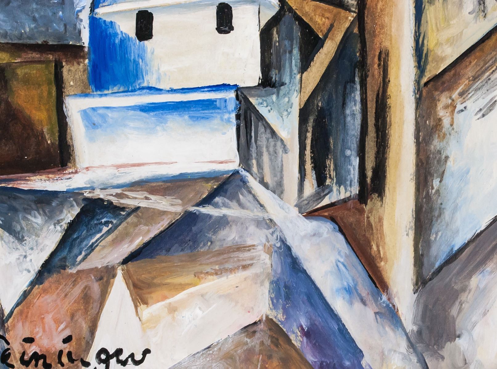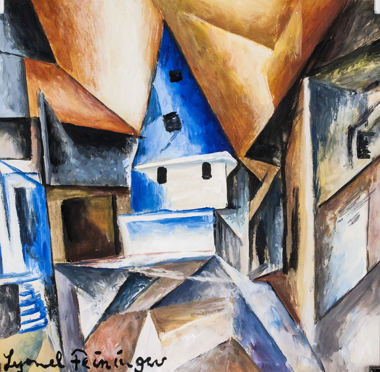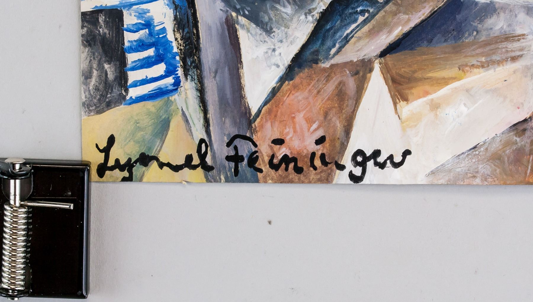 Gouache on paper, unframed. Featuring cubist expressionist composition. Signed Lyonel Feininger in lower left hand corner. Faintly inscribed with "No-91" on verso. Stamped "Collection of A. Cnopp" on verso. Attributed to Lyonel Feininger (1871-1956, American-German). 19.5 x 20 cm (7.75 x 8 in). PROVENANCE: Southern Ontario estate