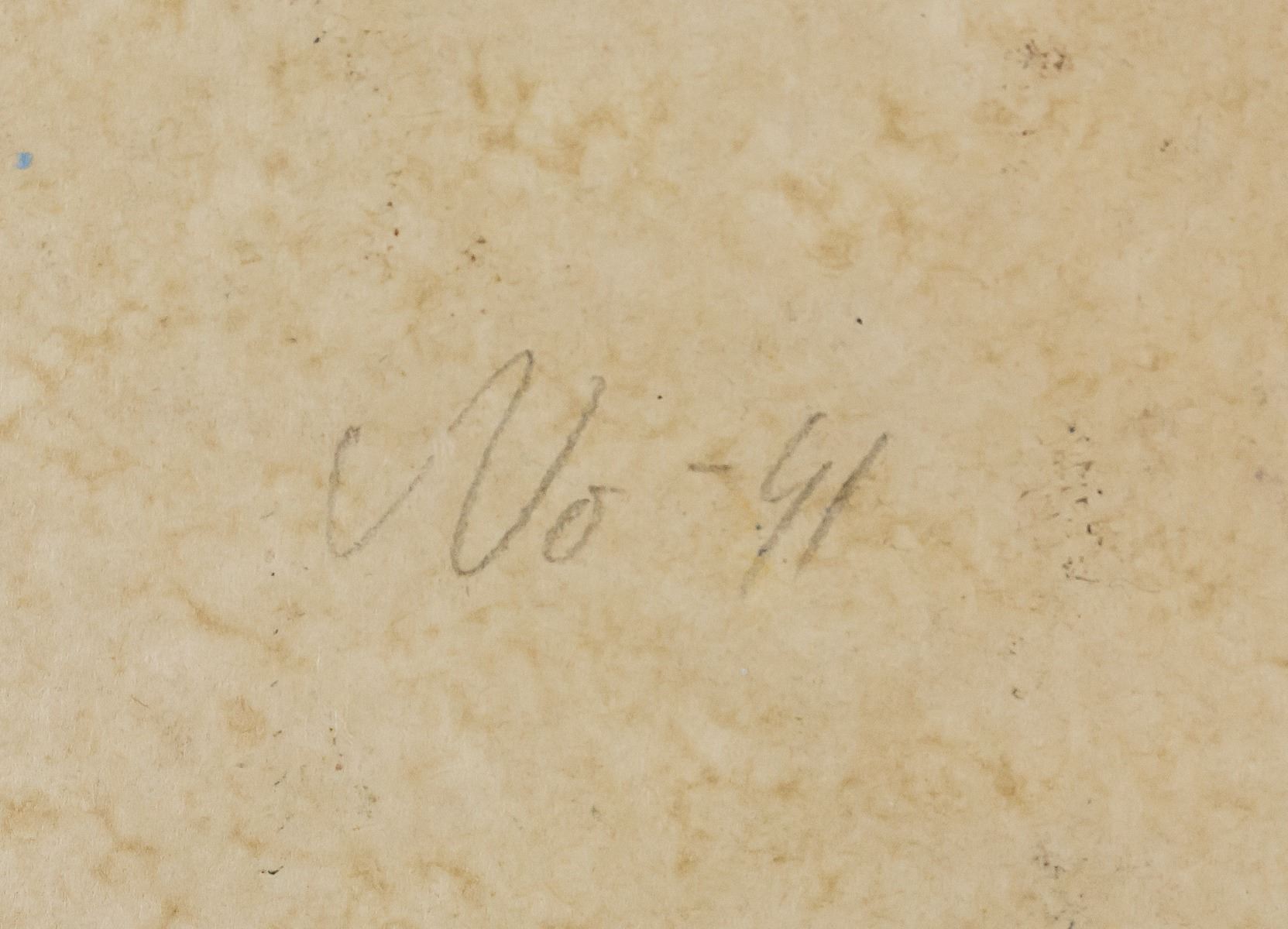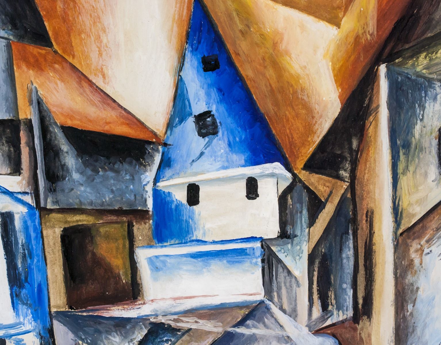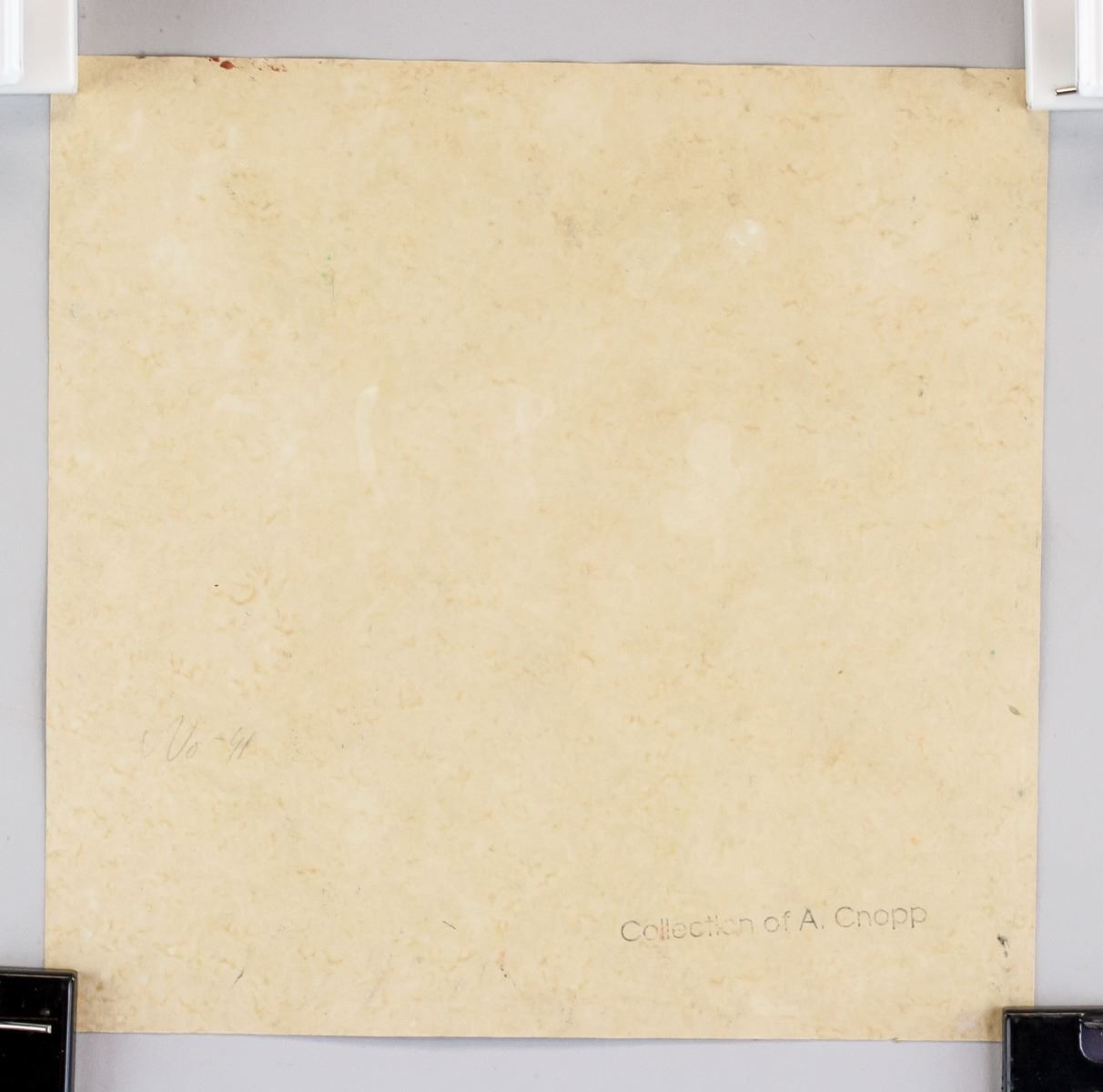 Gouache on paper, unframed. Featuring cubist expressionist composition. Signed Lyonel Feininger in lower left hand corner. Faintly inscribed with "No-91" on verso. Stamped "Collection of A. Cnopp" on verso. Attributed to Lyonel Feininger (1871-1956, American-German). 19.5 x 20 cm (7.75 x 8 in). PROVENANCE: Southern Ontario estate