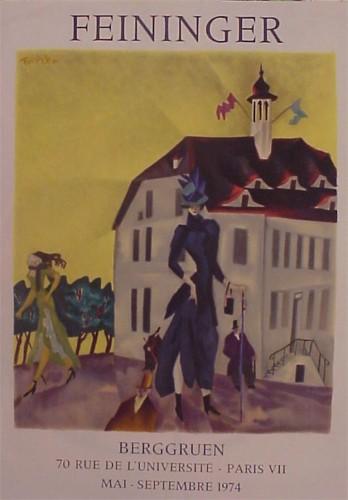 Lyonel Feininger poster FENINGER, BERGGRUEN, 1974, color lithograph poster, 30 1/4 x 21 1/4", published Mourlot, soft creases, toning on verso, creases along left edge.