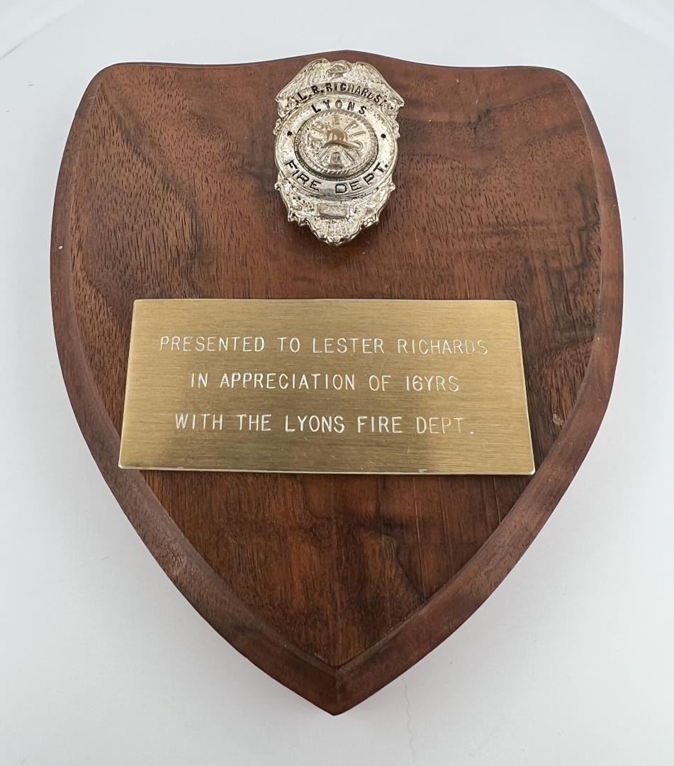 Named to Lester Richards. Badge is 1 3/4" long. Provenance: Jack Ooley Collection.