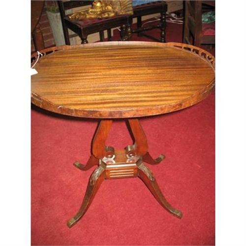 Very fine mahogany lyre base side table. Probably from the 1930's. Carved Acanthus adorns the top of the 4 legs. This is a great buy! We buy entire estates and pass the savings on to you. Please visit our 2 stores, Aardvark Antiques, just north of Atlanta. We do not deliver furniture or ship. We have our customers hire the shipper for your protection. We can help you facilitate this and provide you with recommended shippers. Thanks!