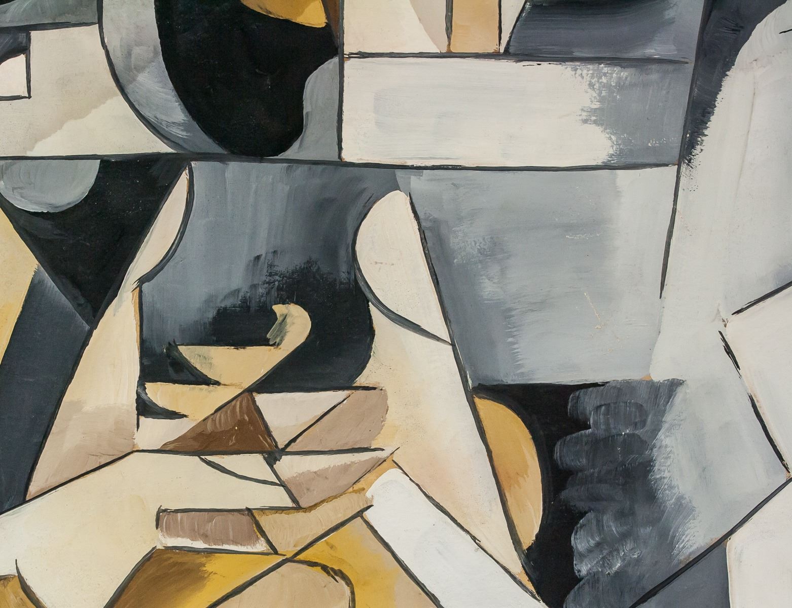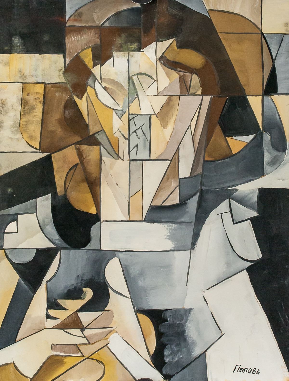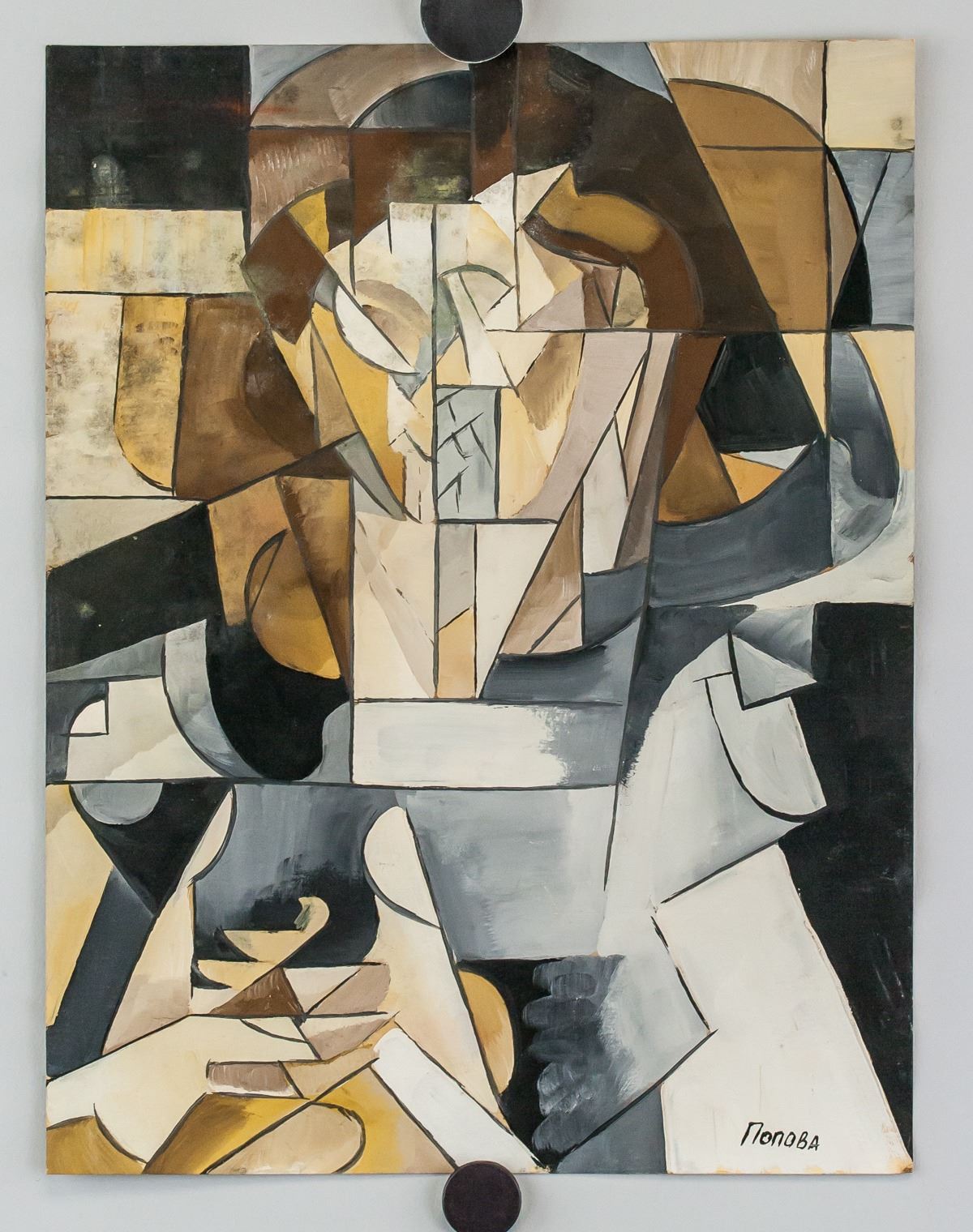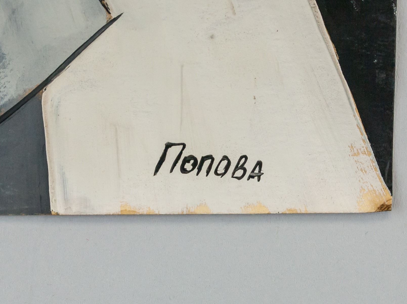 Gouache on paper. Featuring a cubist abstract composition. Signed Popova on the lower right corner. Attributed to Lyubov Popova (1889-1924, Russian). 27.5 x 21 cm (10.75 x 8.25 inches)