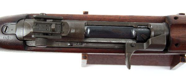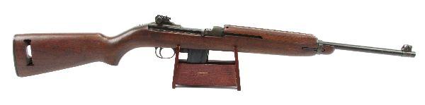 WWII era M-1 Carbine, manufactured by Winchester, and dated December, 1942. Winchester Repeating Arms / Guy H. Drewry inspection cartouche on right side of stock, as well as ordinance wheel with crossed cannons. "P" in circle cartouche at base of rear grip. Stamped "T" by magazine release, "W" on tang nest to rear screw, and "JAO" on rear sight. Flaming bomb mark and "WRA" over date on barrel, with "WP" in oval closer to stock. Finish appears original, and all four magazines are original issue. Bore is bright and clean, bluing is 90%, and stock is very good, with light service marks. No sling or bayonet lug. Overall excellent condition. Caliber: .30 carbine Serial #: 10377