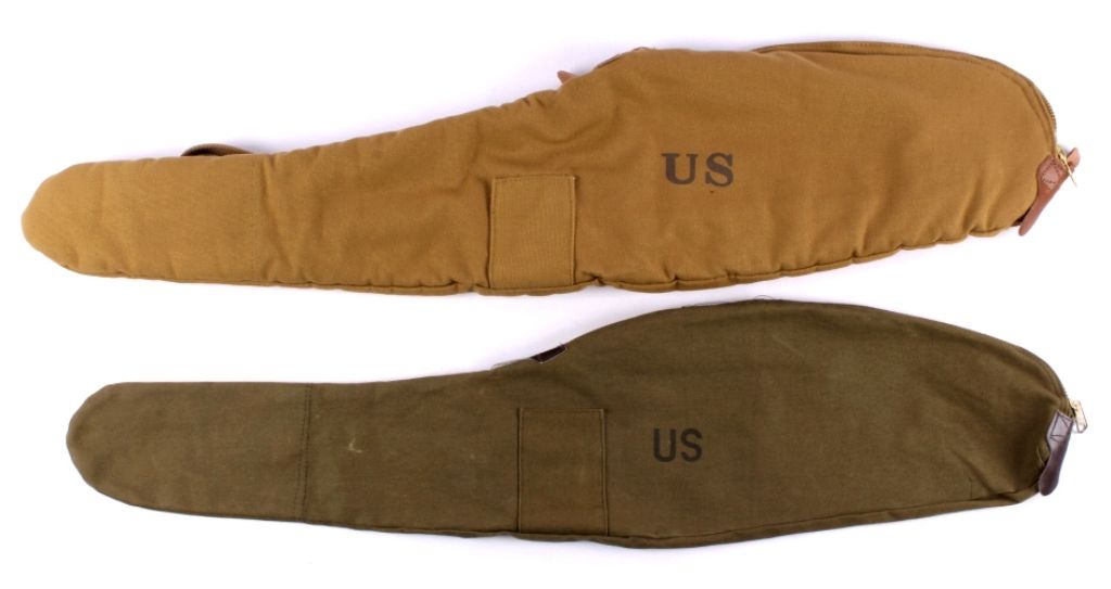 This lot includes 2 M-1 carbine rifle cases. Each of the cases is marked "U.S.". One of the cases is fleece lined. Both cases are in excellent condition. They each measure 37" x 9".