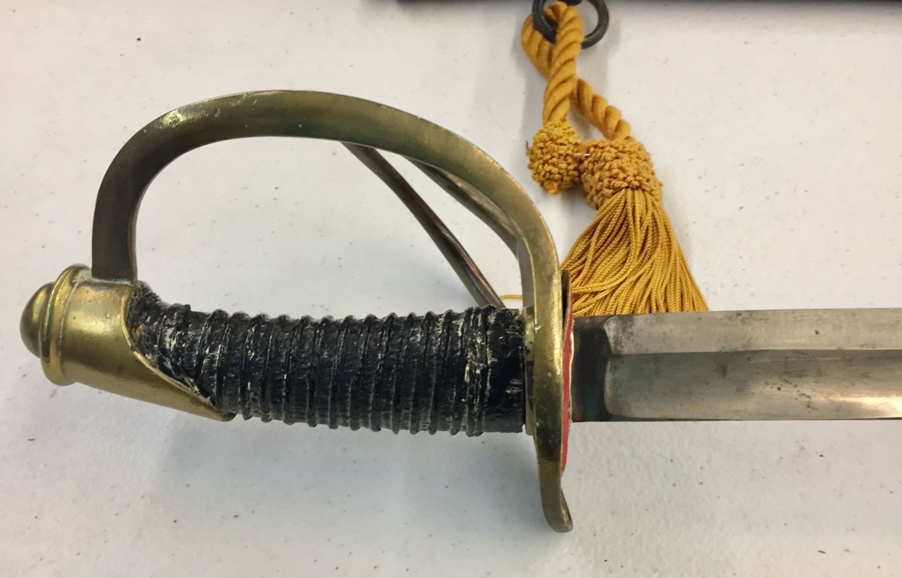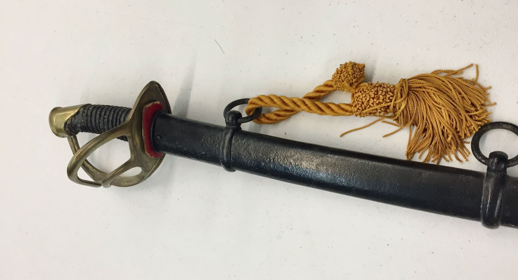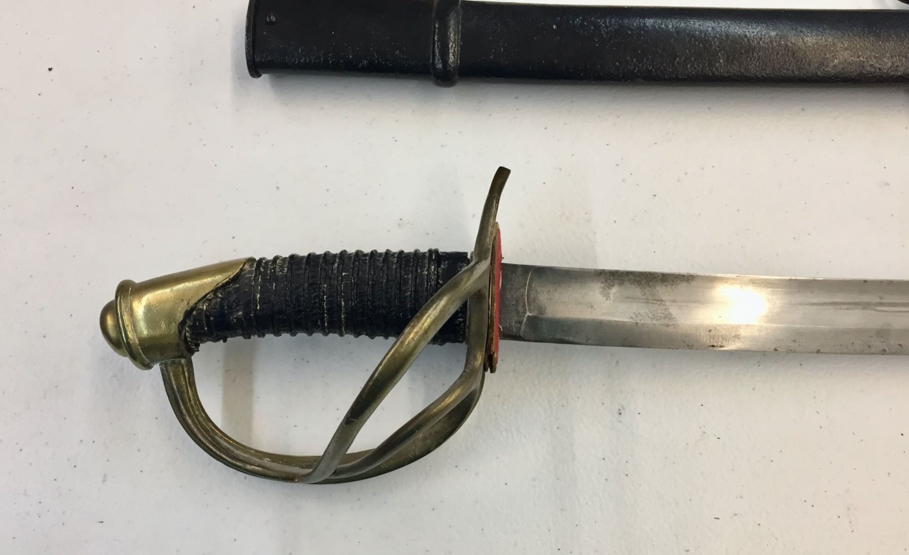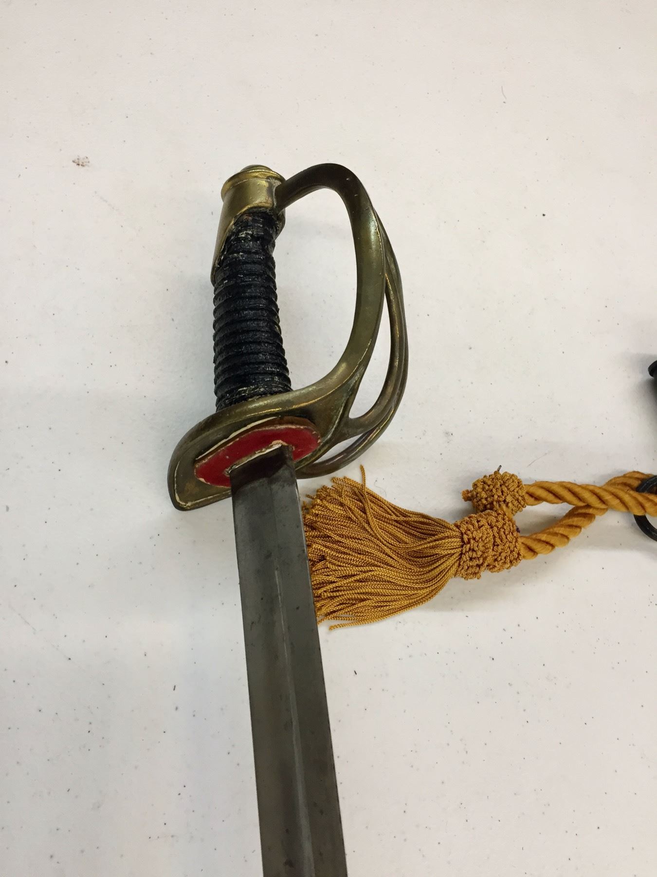Description: Presented for sale in this lot is a sword in the style of the Model 1860 Cavalry sword. It has a metal sheath which has been painted black. The handle has also been replaced. No markings on the hilt. Maker: Unknown. Approx. Age: Vintage. Size: Measures 42-1/2†long. Condition: Fair, has been altered as described above. Please look closely at the pictures - they are an important part of our description. Shipping: There will be a $10 handling / packaging fee for shipping this lot. The actual cost of postage will be added on top of that.