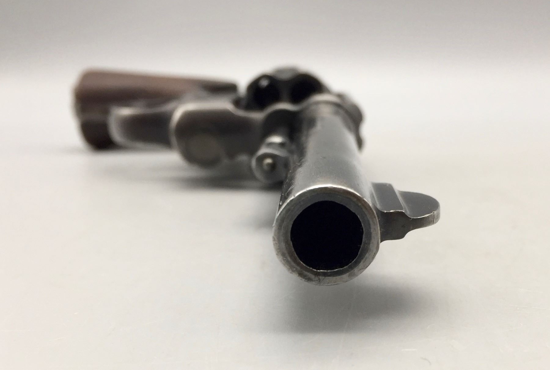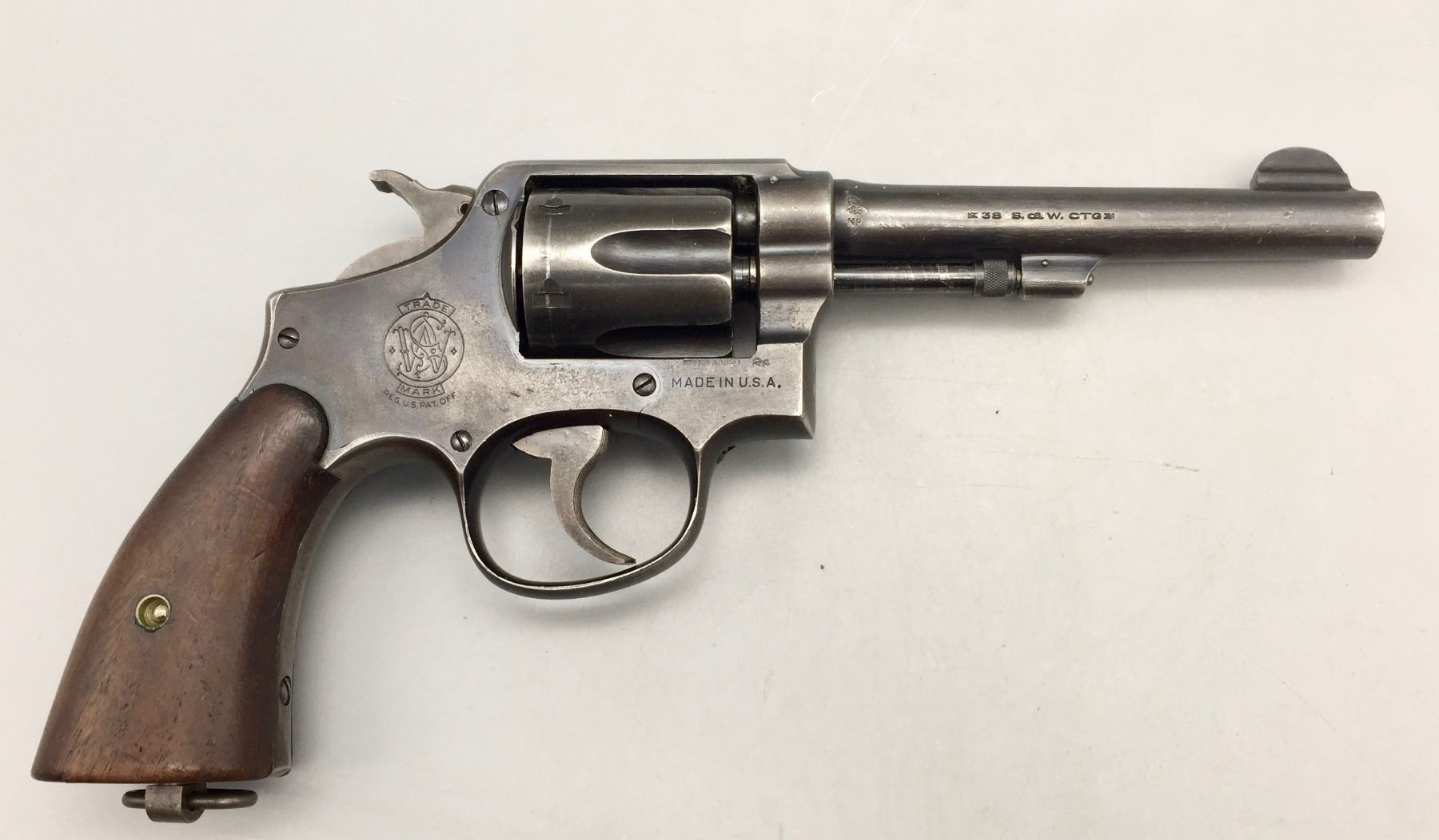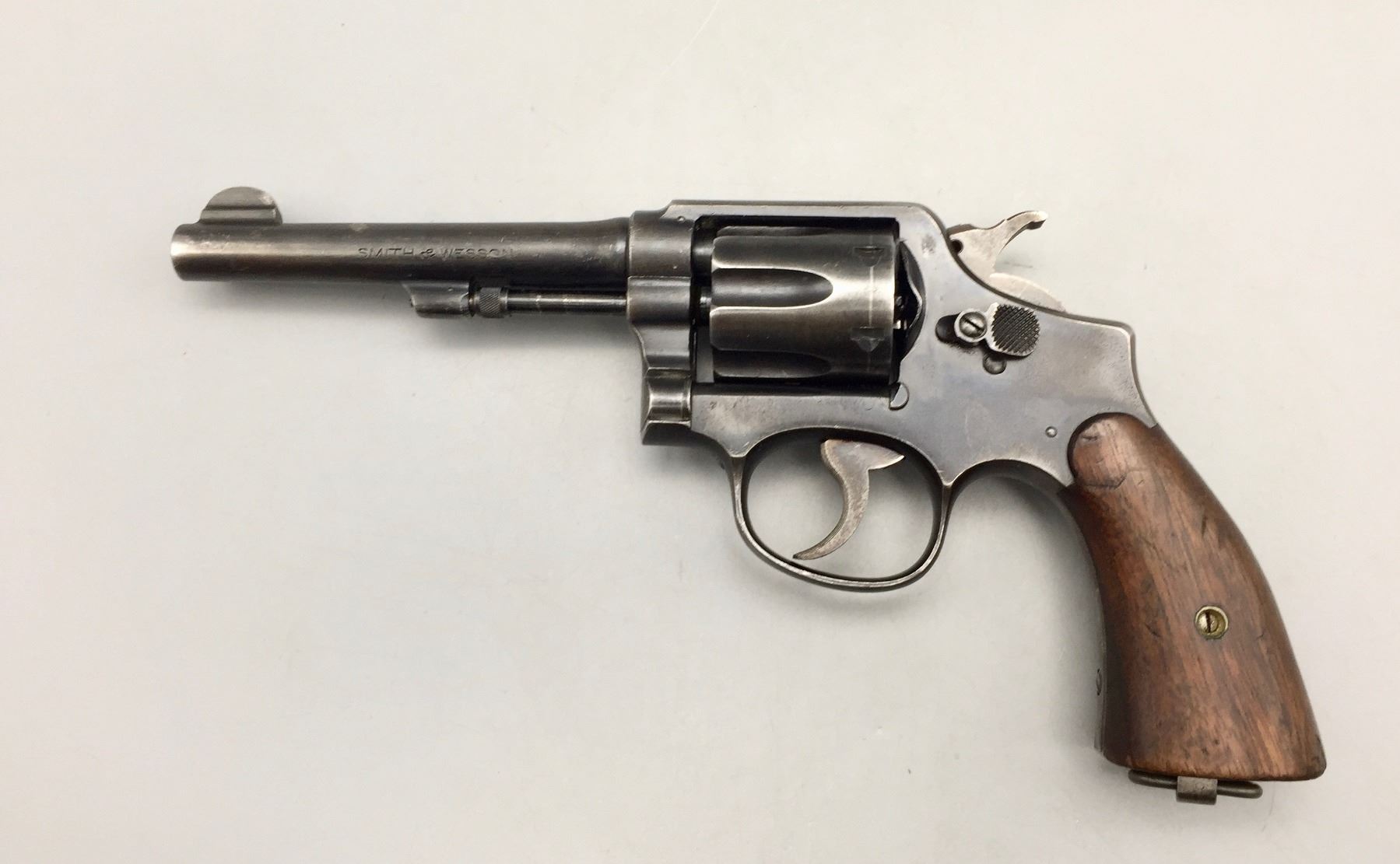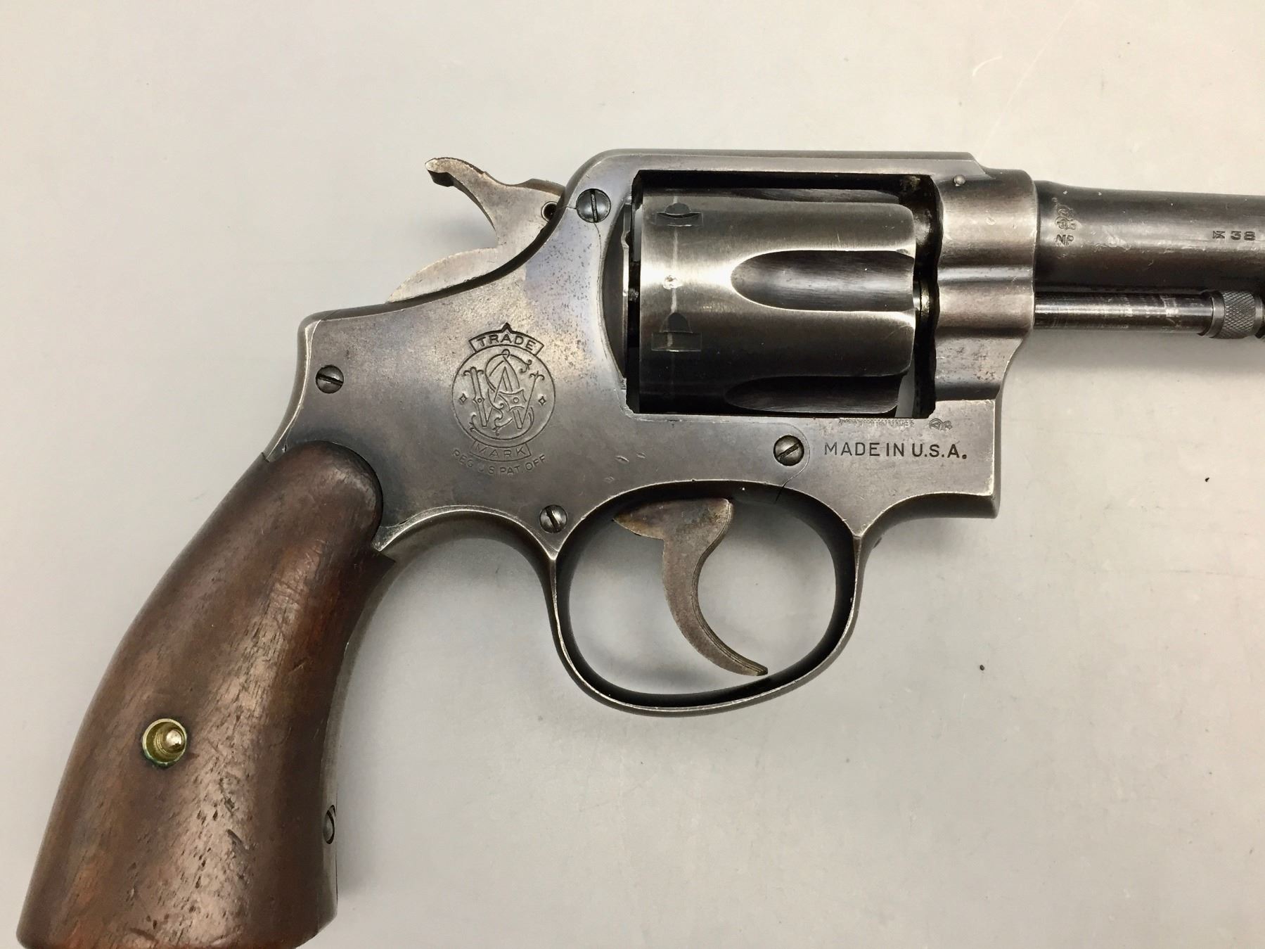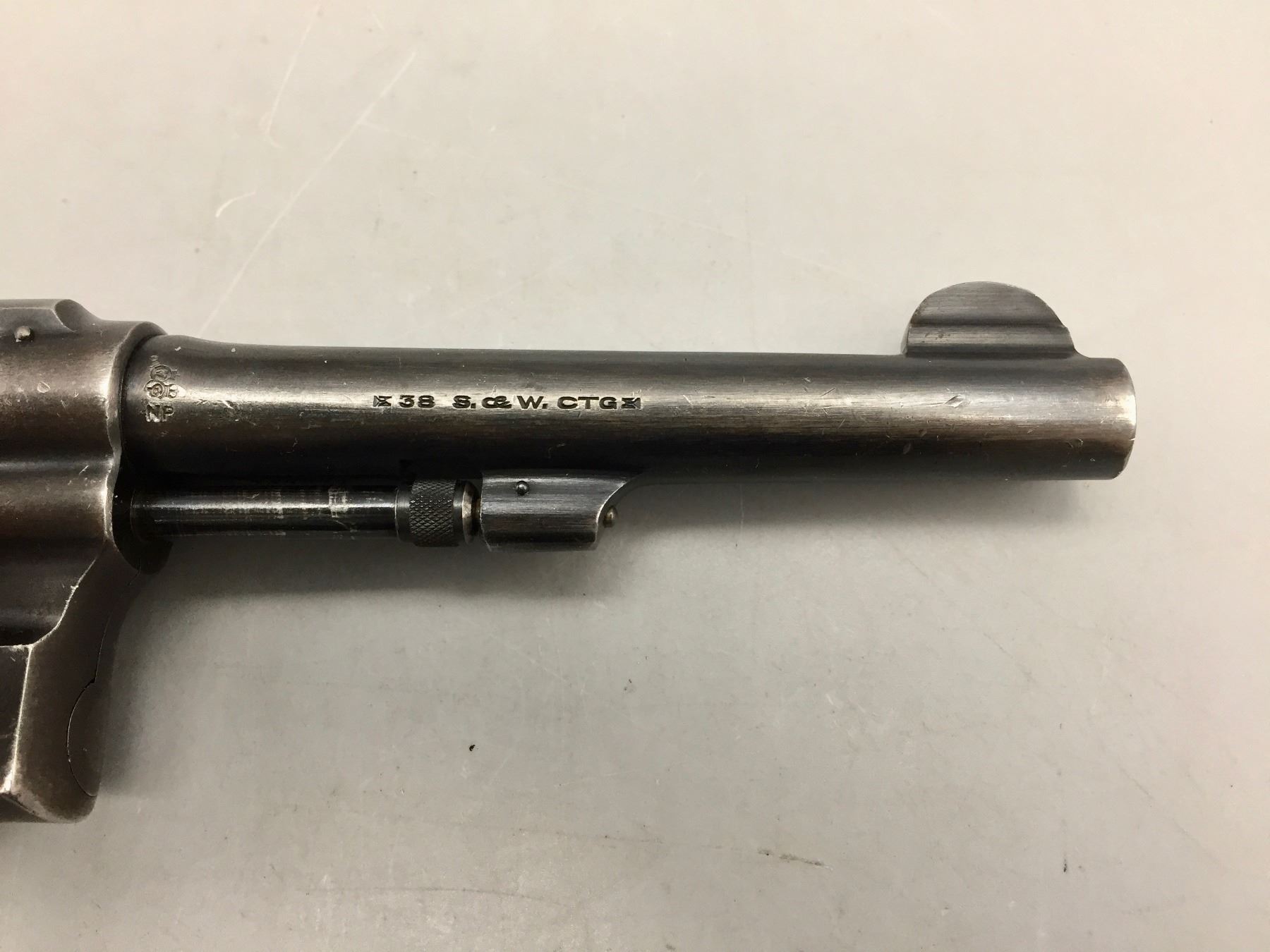 Description: Offered for sale in this lot is a model 1905, fourth change, Smith and Wesson .38 spcl. revolver. It is a British, WWII, pre-victory model. Has original grips and all numbers match. Maker: Smith and Wesson. Approx. Age: Circa 1940. Size: Barrel measures 5”. Chambered in .38 spcl.. Condition: Pretty good for its age, normal wear expected. Please look closely at the pictures - they are an important part of our description. Shipping: There will be a $10 handling / packaging fee for shipping this lot. The actual cost of postage will be added on top of that. *****This firearm requires an FFL Transfer*****